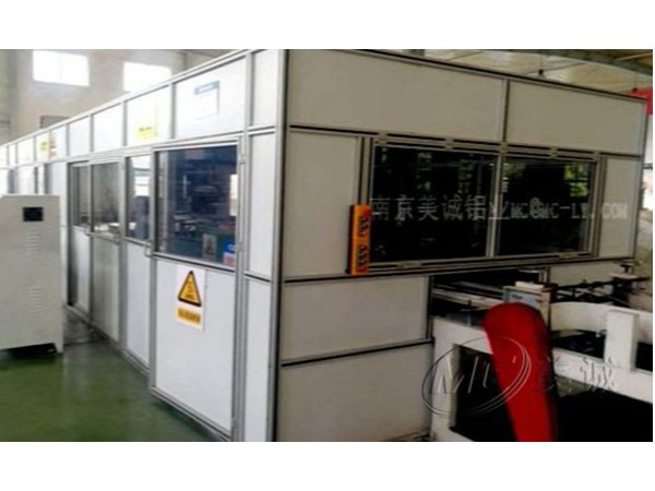 鋁型材設備護罩 是在設備外圍建立安全范圍防護措施,以劃分安全范圍,阻隔人或物與設備直接接觸,起到安全警示作用,常和報警及斷電設備配套使用。框架部分使用鋁型材,配合絲網、亞克力、PC等各類板材,通過鋁型材配件安裝膨脹螺栓連接鋁型材立柱和地面。