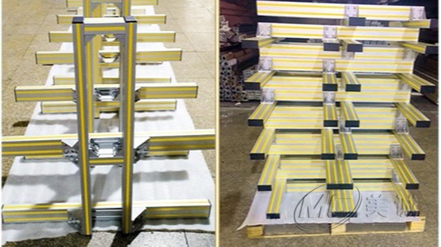 電氣型材架由鋁型材及配件、鈑金件組裝而成。而美誠鋁型材規格齊全,框架結構免費設計,根據圖紙設計無限次整改,專業加工團隊定制加工,鋁型材設備機柜,設備板材及門框等全部配套,鋁型材組裝簡單快捷,可框架組裝發貨或者加工好散裝配套發貨。